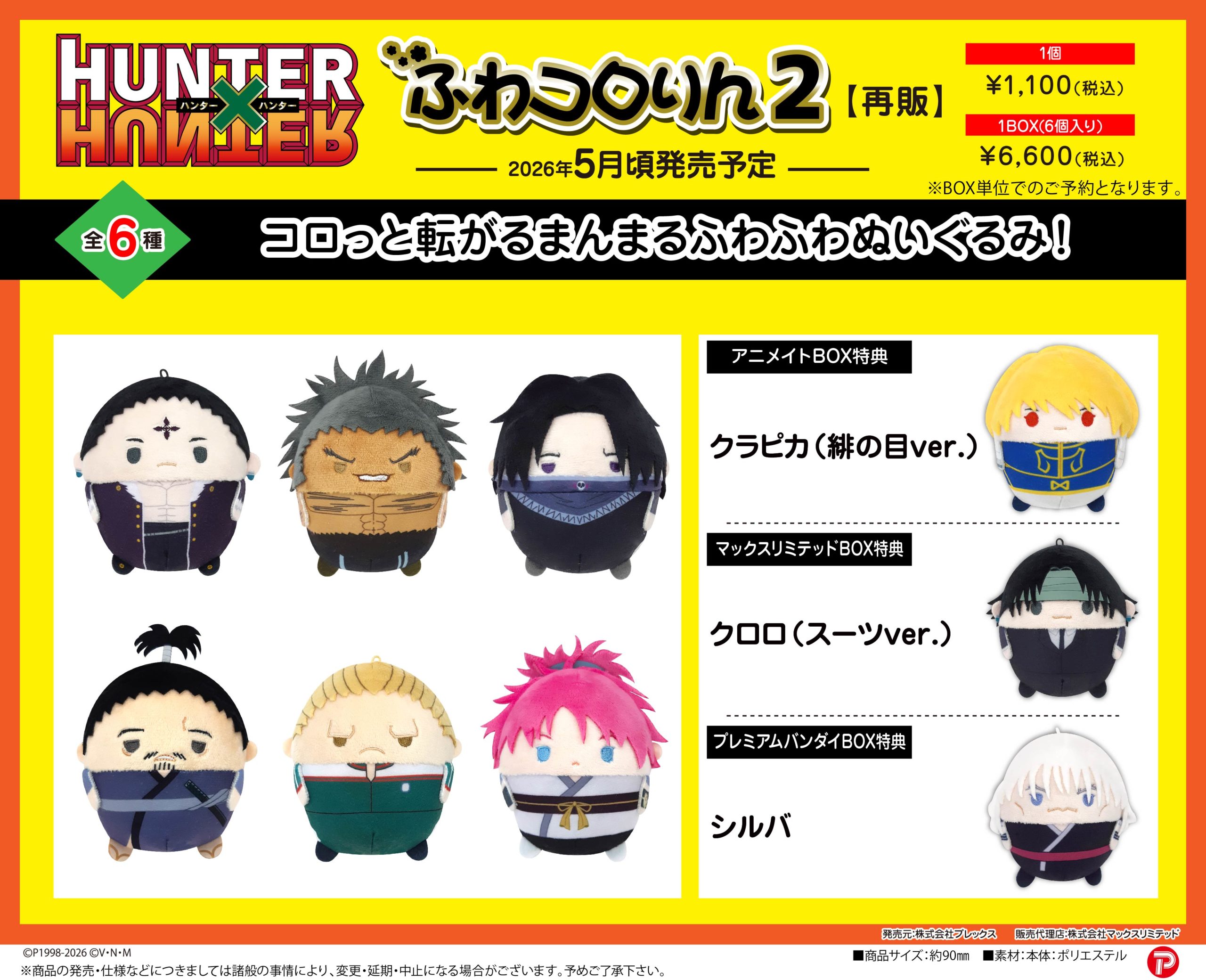『HUNTER×HUNTER』からまんまるでふわふわコロッとしたデフォルメのマスコット【ふわコロりん】の第二弾が再登場!