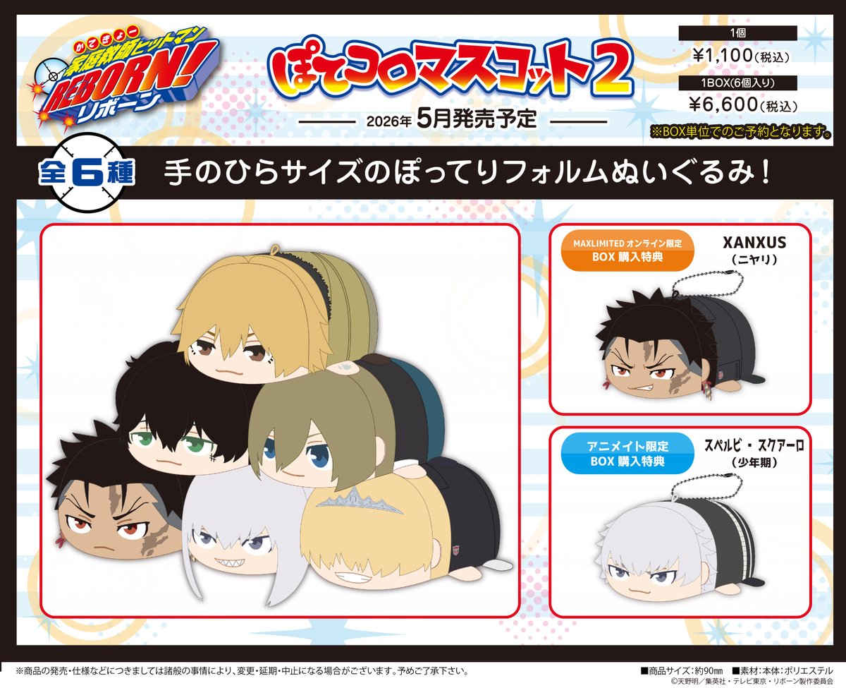 ぬいぐるみ PR家庭教師ヒットマンREBORN! ぽてコロマスコット2 amaama 2026-02-04 記事内に商品プロモーションを含む場合があります 発売元:マックスリミテッド 発売日:2026年5月 参考価格:6,600円(税込)<予約&購入>アニメイト 特典:スペルビ・スクアーロ(少年期)マックスリミテッド 特典:XANXUS(ニヤリ)あみあみ楽天市場駿河屋Amazon Yahoo!ショップコレイズネオウィング楽天ブックスMETAL BOXホビーストックアニメストアセブンネットDMM 通販eeo storeタワーレコードホビーサーチゲーマーズ<商品情報> リボーン