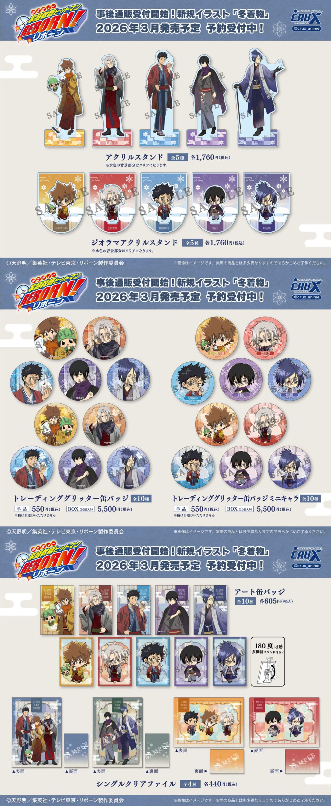 家庭教師ヒットマンREBORN! PRTVアニメ『家庭教師ヒットマンREBORN!』〈冬着物〉シリーズ amaama 2026-02-22 記事内に商品プロモーションを含む場合があります 発売元:クラックス 発売日:2026年3月 参考価格:円(税込)<予約&購入>クラック オンラインアニメイトあみあみネオウィングMETAL BOXホビーストックアニメストアセブンネット楽天ブックス楽天市場駿河屋AmazonYahoo!ショップコレイズ<商品情報> リボーン