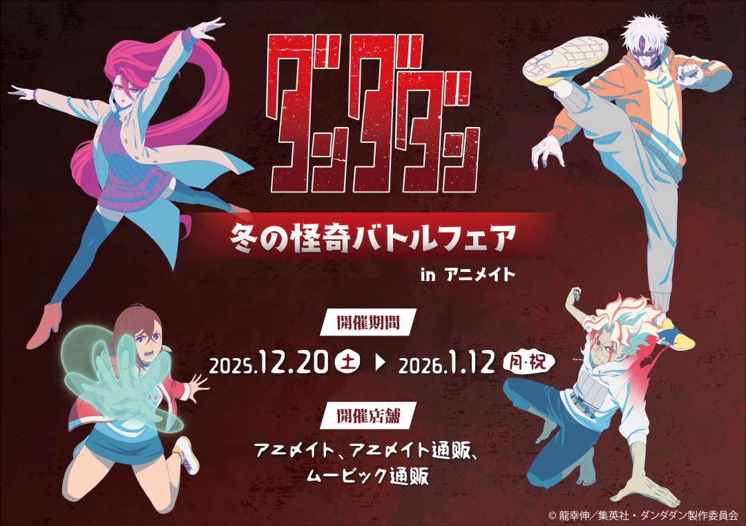 期間中TVアニメ『ダンダダン』関連のキャラクターグッズをご購入・ご予約内金1,100円(税込)毎、書籍・CD・DVD・BD商品をご購入・ご予約(内金1,100円(税込)以上必須)1点毎にポストカード(全4種)を1枚プレゼント!